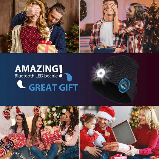 Stay Warm and Stylish with Our Bluetooth Beanie Hat Featuring LED Light and Stereo Music Player!