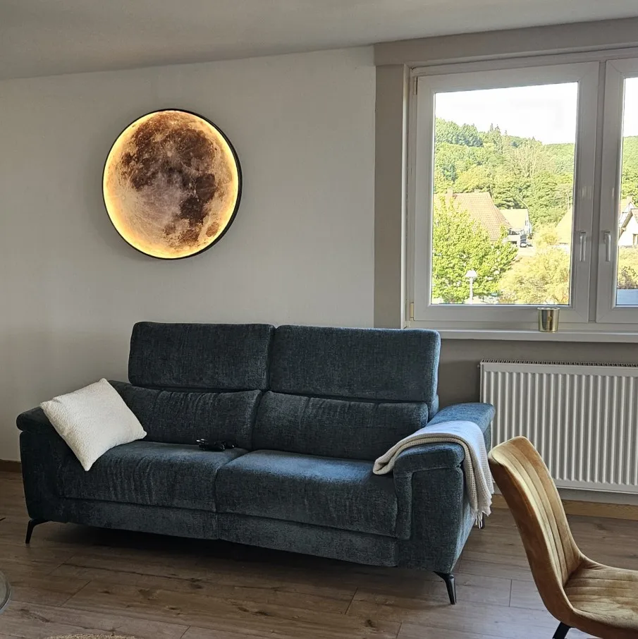 The Modern LED Moon Wall Lamp has transformed my bedroom into a stylish and inviting space!